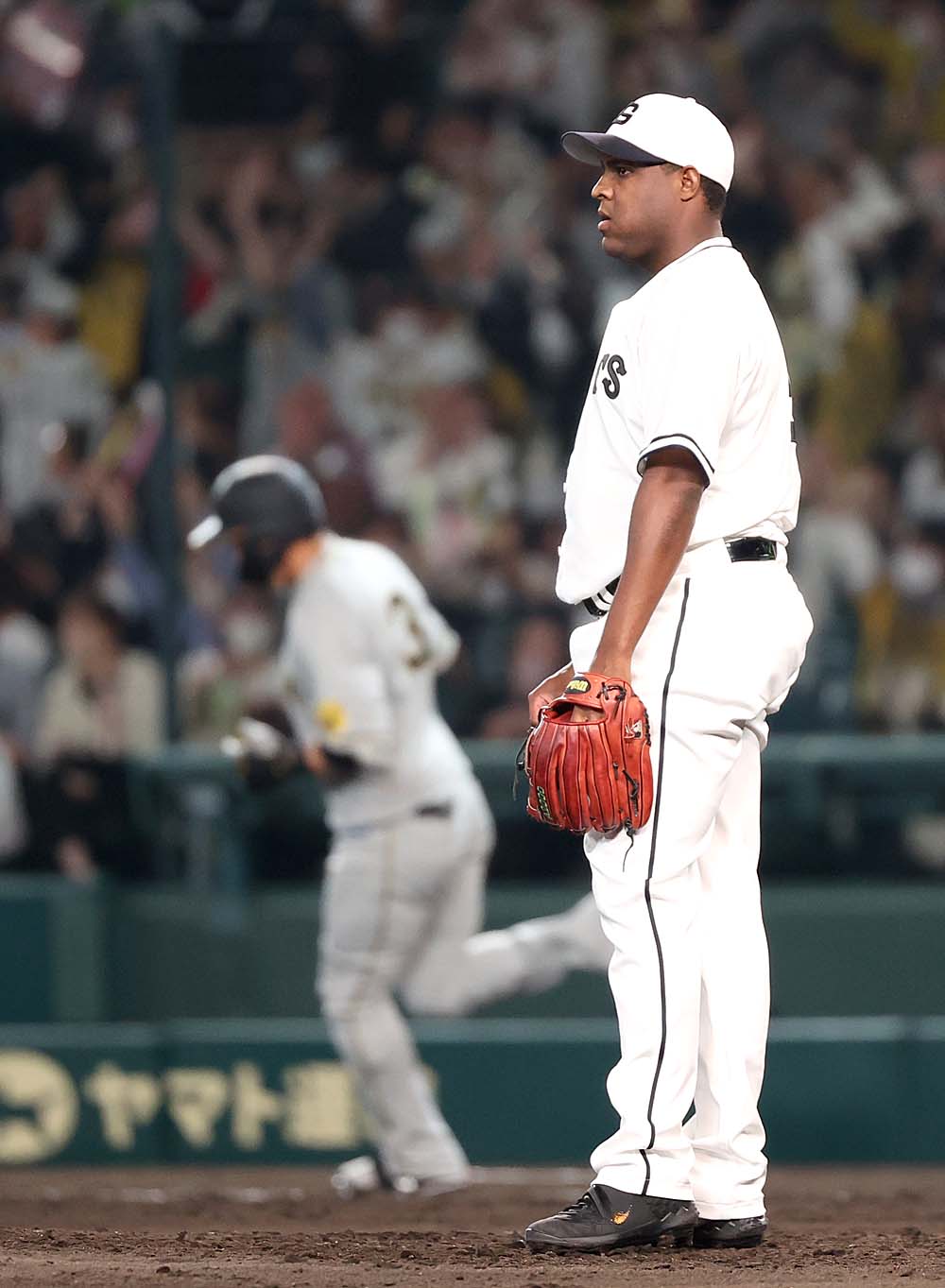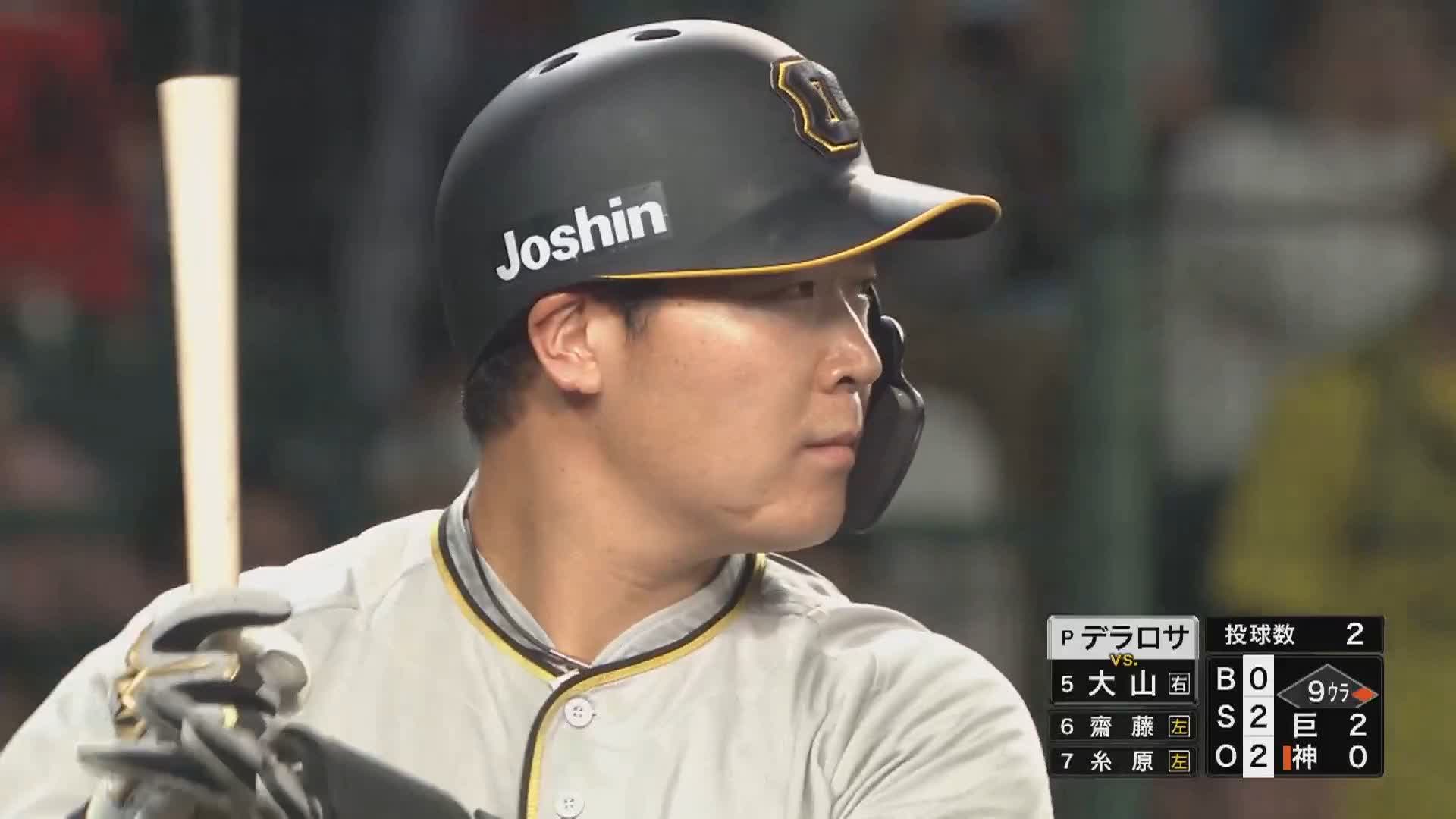 #今村信貴 投手が登板。二死を奪うも安打を浴びたところで #デラロサ 投手に交代。デラロサ投手が大山選手に同点本塁打を浴びる。
