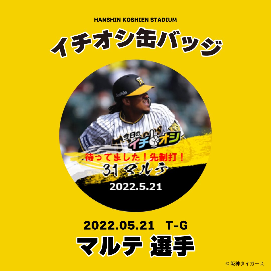 勝ちました〜!外周3号門向かいのミズノスクエアにて「イチオシ缶バッジ」販売しております!今日は、待ってました!先制打!マルテ選手!ぜひお買い求めください。#hanshin #阪神タイガース #甲子園球場 #マルテ 選手 pic.twitter.com/ijtnxVYa0U