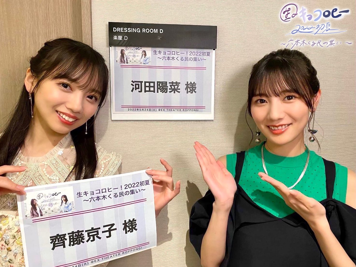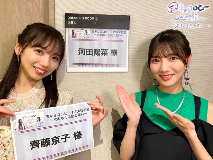 この後、15:30〜EXシアター六本木にて開催の「生キョコロヒー!2022初夏 〜六本木くる民の集い〜」に齊藤京子と河田陽菜が登場致します🥰