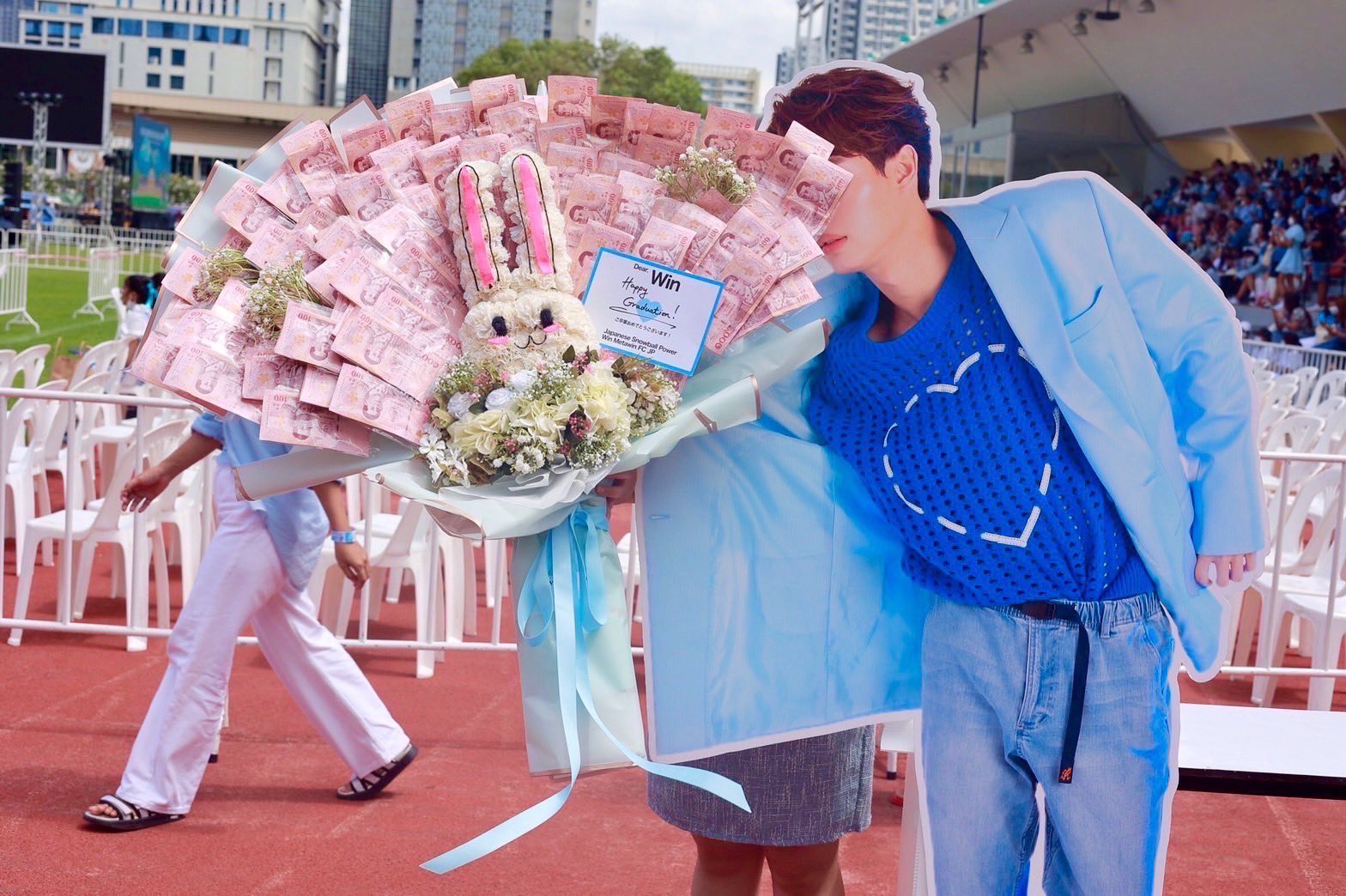会場に@brightwinJFC からwinくん宛のマネーフラワーが届けられました。作成は@we29flowers