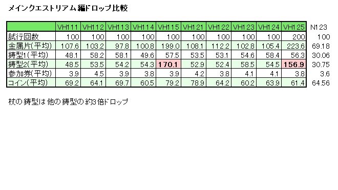 ■メインクエストリアム編ドロップ比較