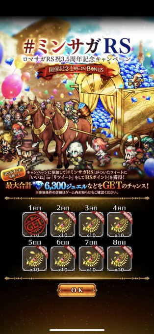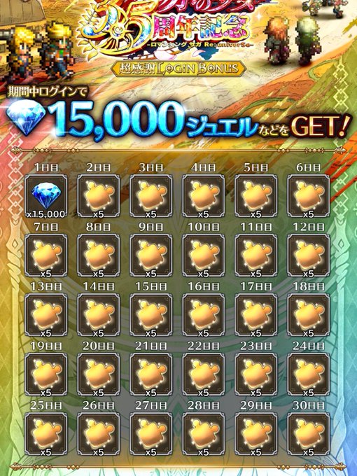 【#ミンサガRS ロマサガRS祝3.5周年記念キャンペーン開催記念ログインボーナス開催!】