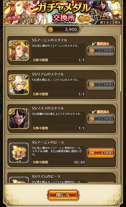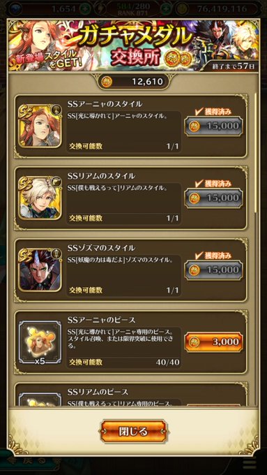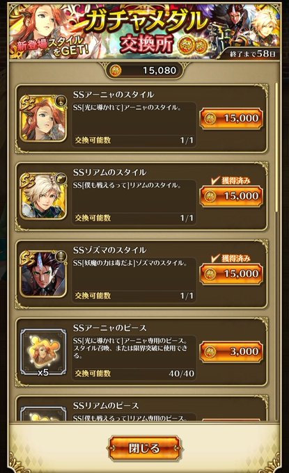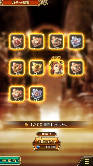 昨日メンテ終わってガチャ引いたんですが、アーニャ編はまあまあの成績でした。tkb⭐︎ニップレスの方は…ゴメンなさい。10連目と20連目で連続マイスが出た時はもうダメかと思ったけど、結果オーライでした。 pic.twitter.com/lEWF52M0Y4