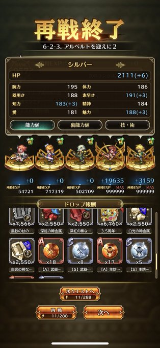 メイン6話の錬成素材のドロップ平均、1話と似たようなものだった(1話のデータはななろっくさんのツイートを参照)