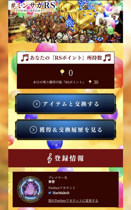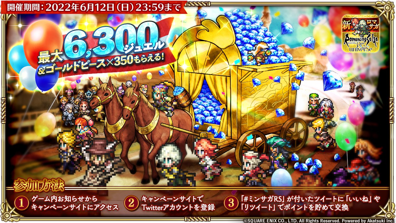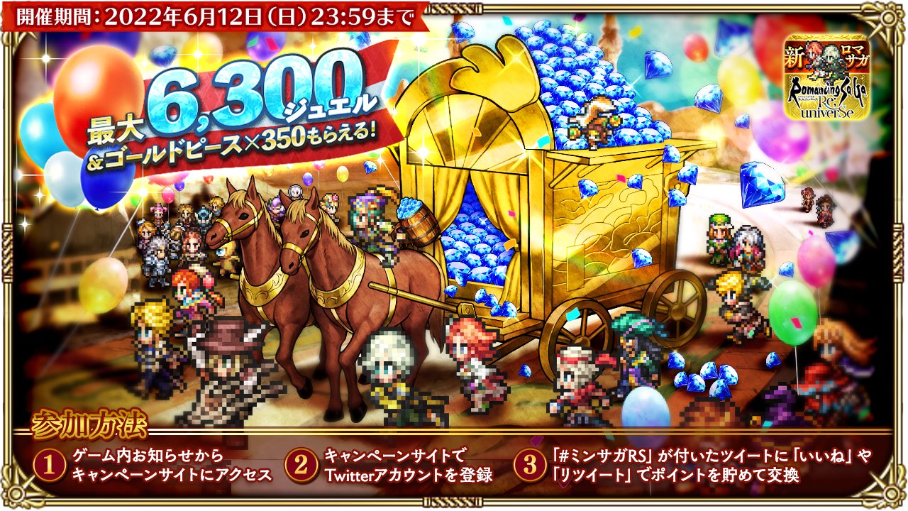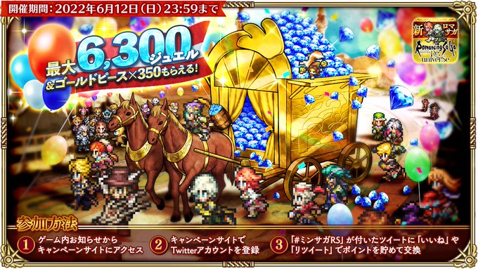 ミンサガRS が付いたツイートに「いいね」や「RT」でRSポイントを獲得してアイテムと交換しよう♪