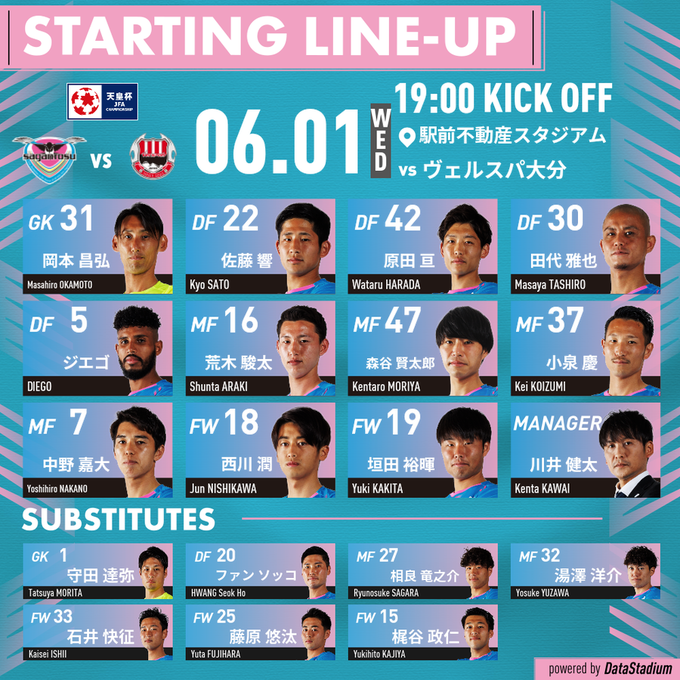 【 #天皇杯 2回戦熊本戦 スタメン】