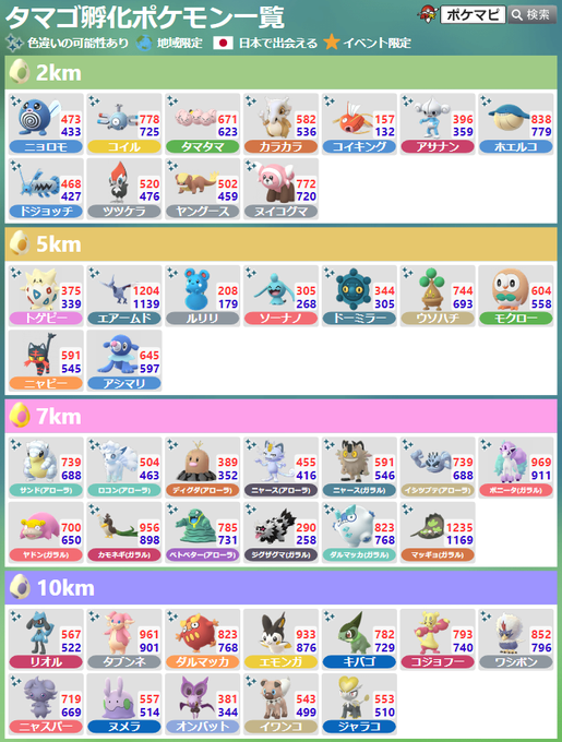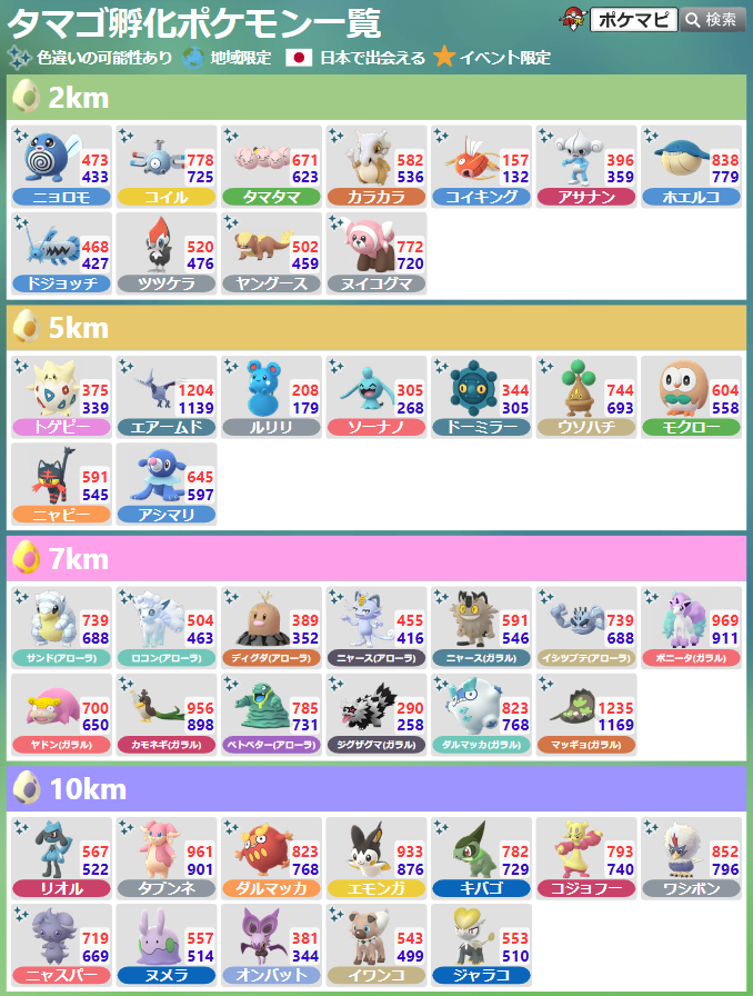 シーズンオブGOで、2kmタマゴ、5kmタマゴ、7kmタマゴ、10kmタマゴから出会えるポケモン🥚