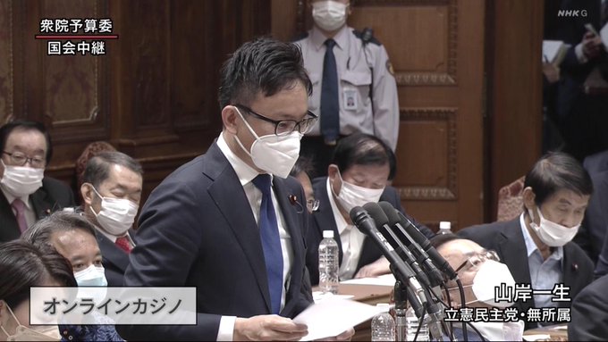 山岸一生議員の質疑が良かった。最初は緊張している風に見えたが、滑舌良し、論点はオンラインカジノ→IR誘致と分かり易く論理的、のらりくらりとかわす岸田総理に対して感情的にならず冷静に言質を取る事に徹し、時間の使い方も上手かった。立憲民主党にもまだまだ期待出来ると思わされた。