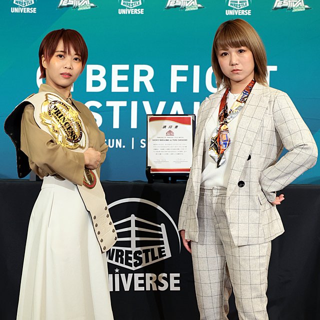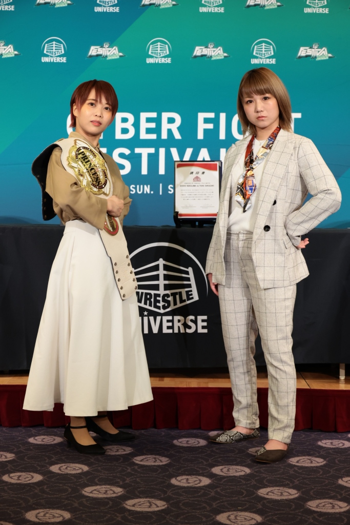 【CyberFight Festival/東京女子】中島「一番大きい花火を打ち上げる」、坂崎「本気の試合を」 プリプリ王座戦調印式