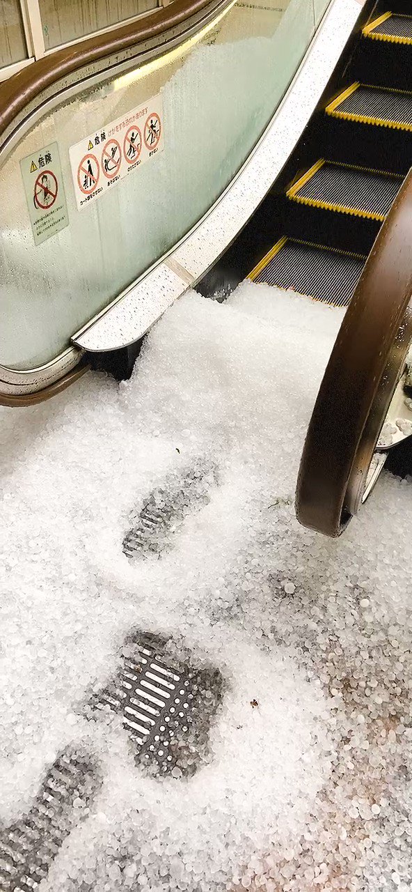 午後3時半頃、突然の雹に慌てる飼育員たち💦