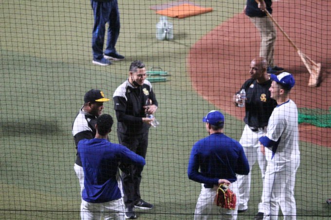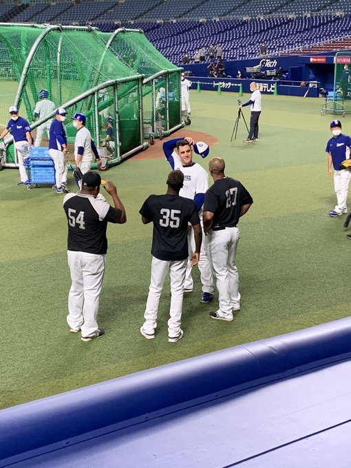 #デスパイネ 選手、#モイネロ 投手、#グラシアル 選手と談笑する #A・マルティネス 選手