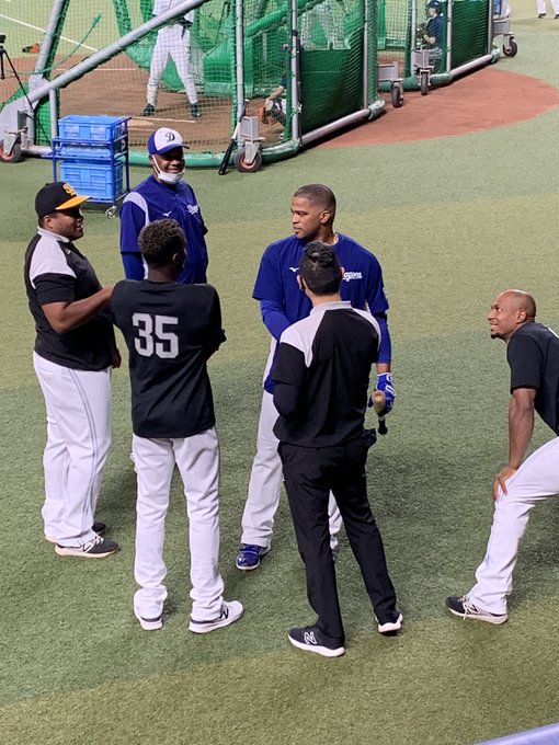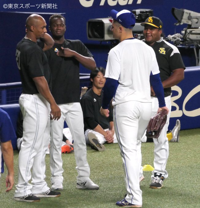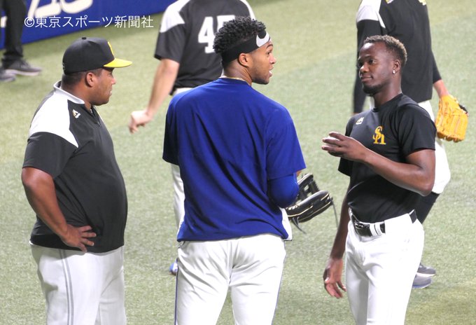 ソフトバンクのキューバ出身選手らと話す #オマール・リナレス コーチ