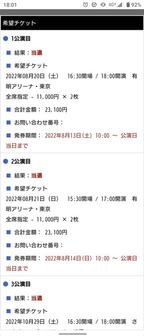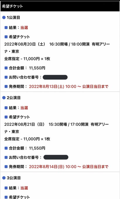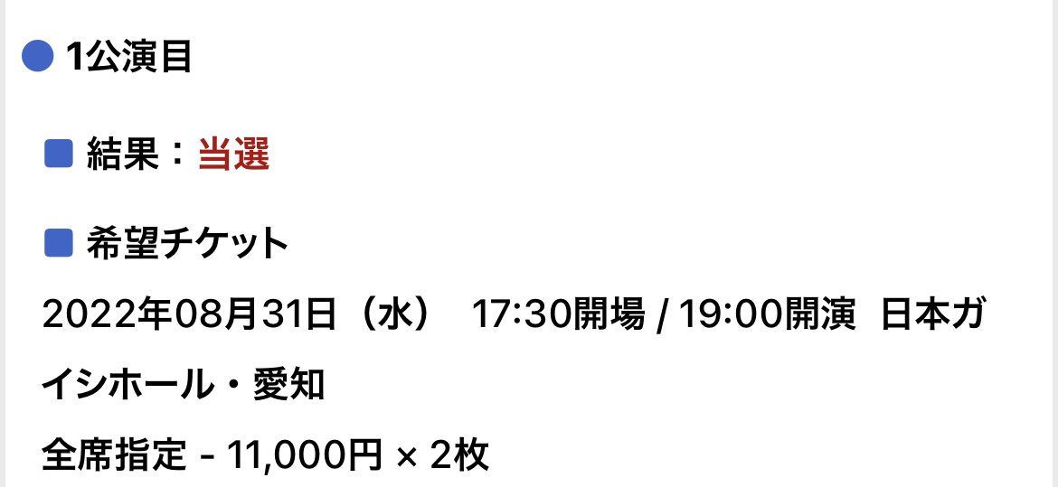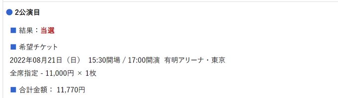 メール来ないんですけど、ぴあにログインしたら結果見られました!😂😂😂希望全て当選で…!ありがとうございます!💕💕💕大好き…!!!