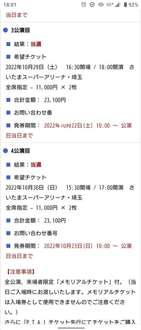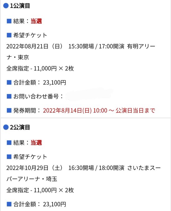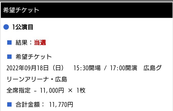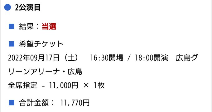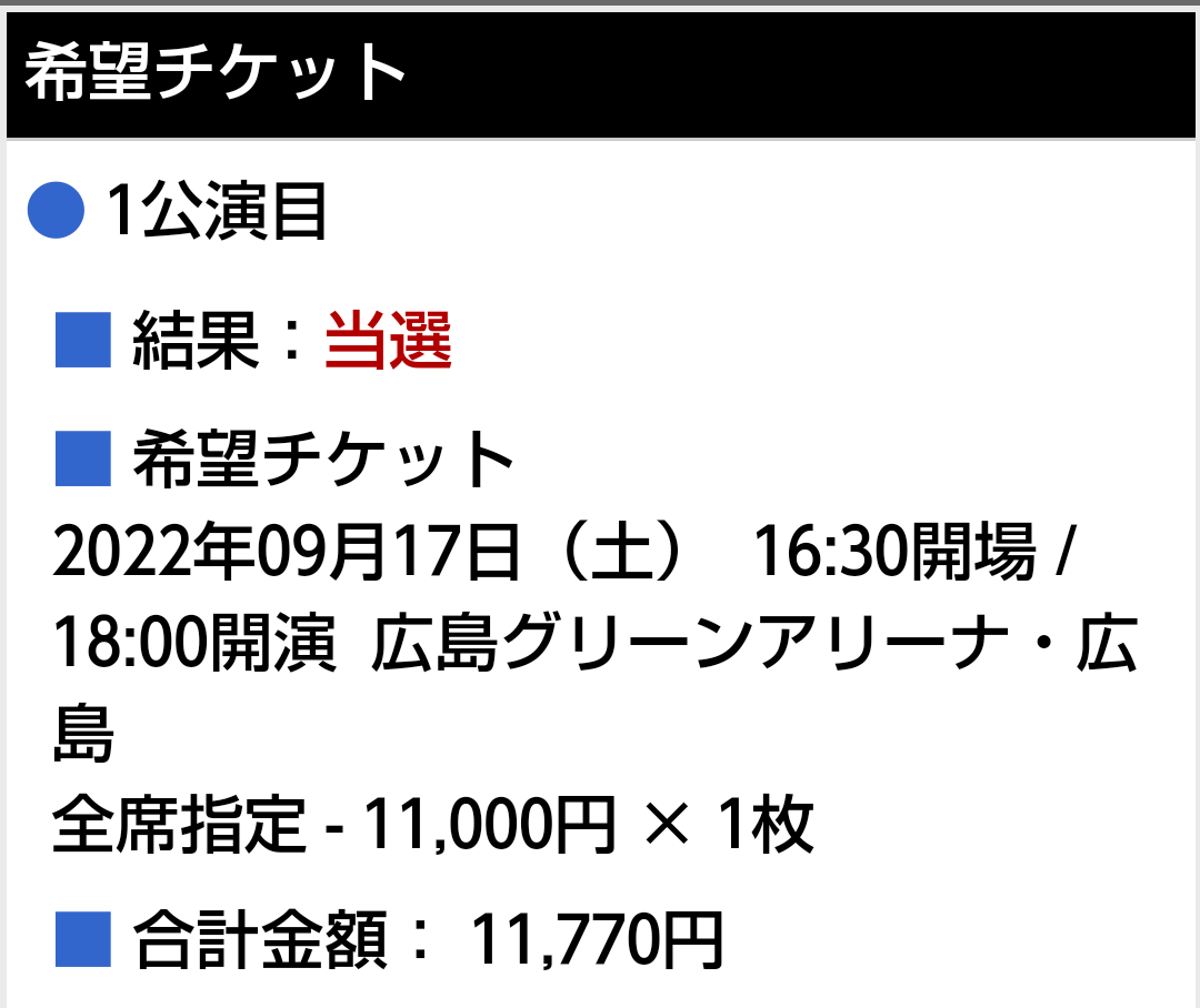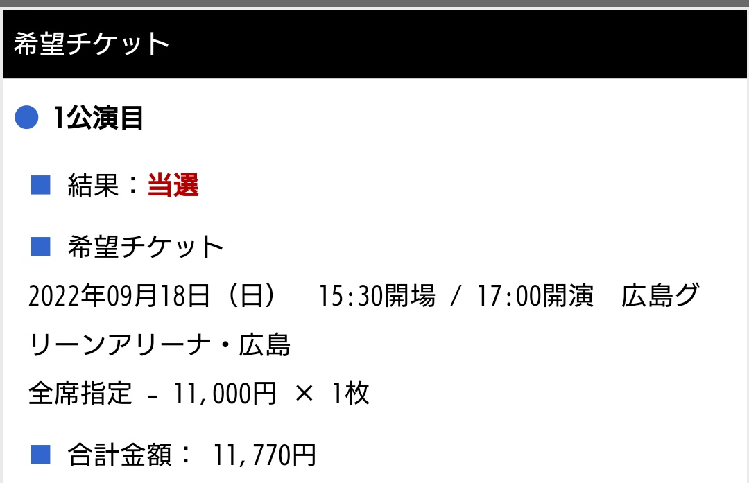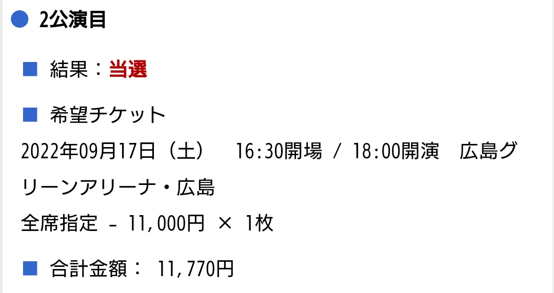 どちらか1日当選してくれていたら嬉しいと思っていましたが、広島会場2公演とも当選しました!