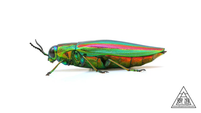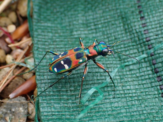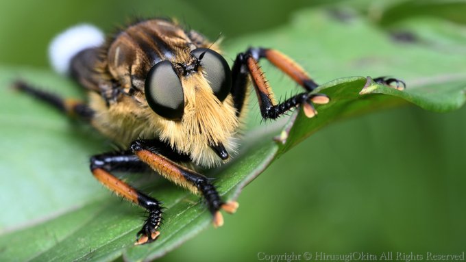 とてもキレイな色をしていて、よく見ると足に沢山の毛があったりと面白い虫です… pic.twitter.com/CfNuYEdvJQ