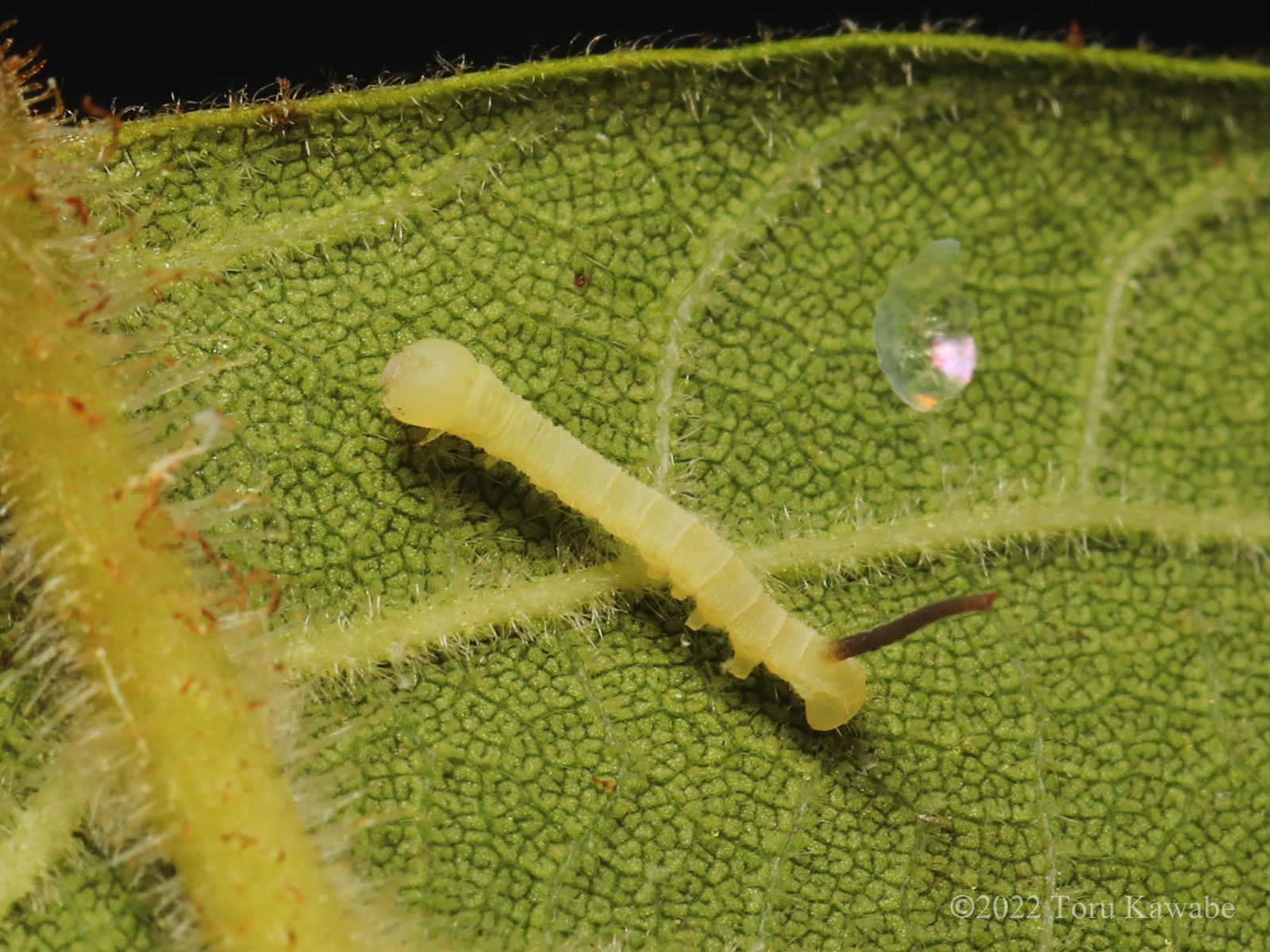 虫の日にオニグルミで見つけた卵から、虫の日のうちに出てきました。イモムシはかわいいし、卵の殻はこわれた瞬間のシャボン玉みたいできれい。