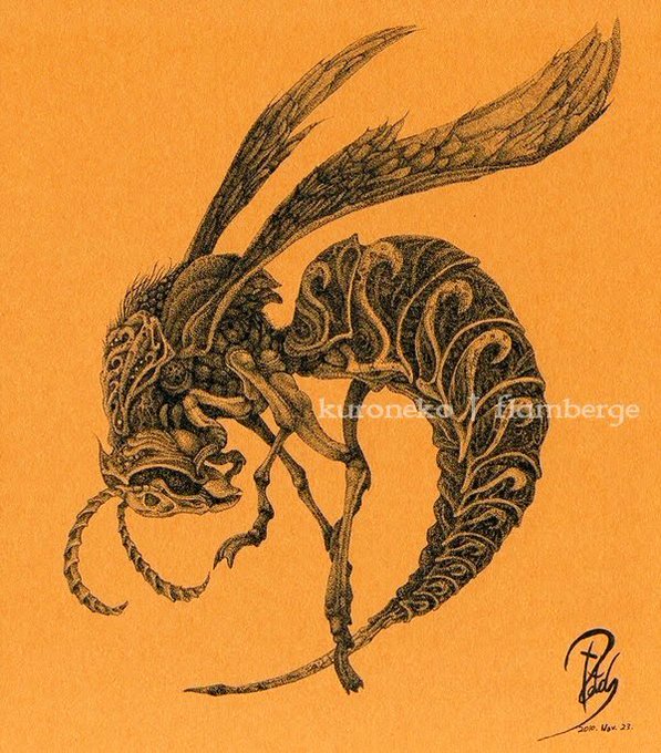 2枚目はスズメバチを装飾的に描いてみました。