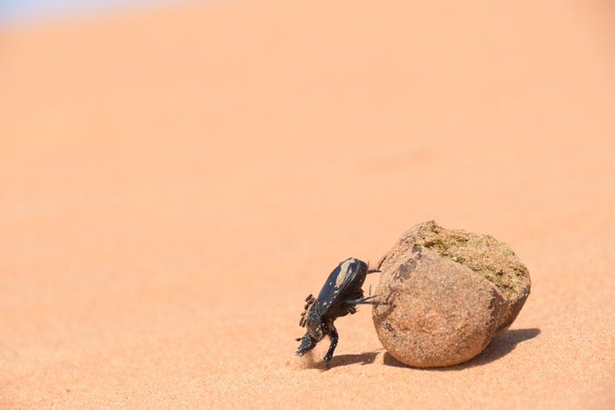 次に、これぞ(?)フンコロガシ。とにかく速いので、途中からスローモーションで、不屈のフンコロガシ氏を。 pic.twitter.com/58XeKJAWFv