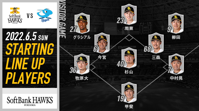 ソフトバンク、周東が2番中堅 中日戦スタメン