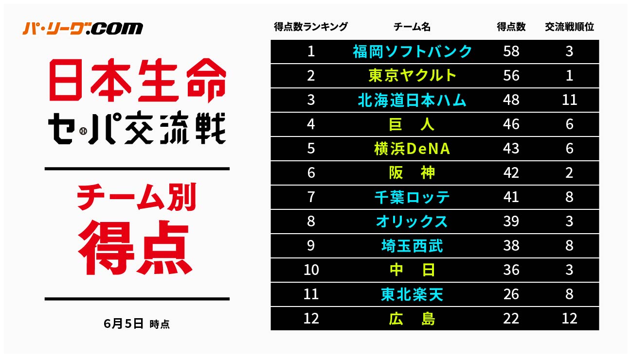 ✅チーム別得点成績(6月5日時点)