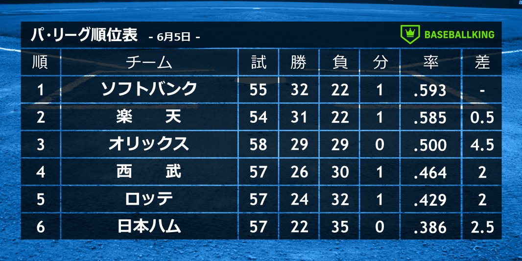 6/5 試合結果 パ・リーグ 3勝