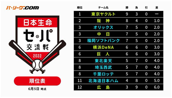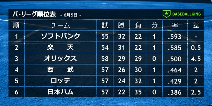 📈パ・リーグ順位表📉