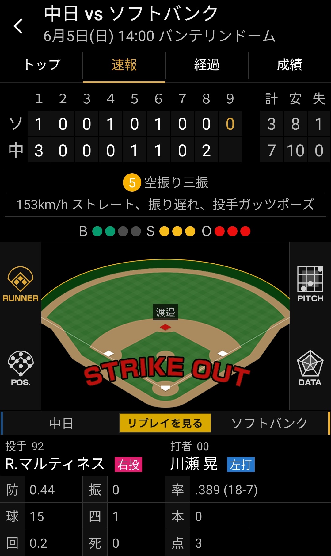 中日7-3福岡ソフトバンク(6/5)