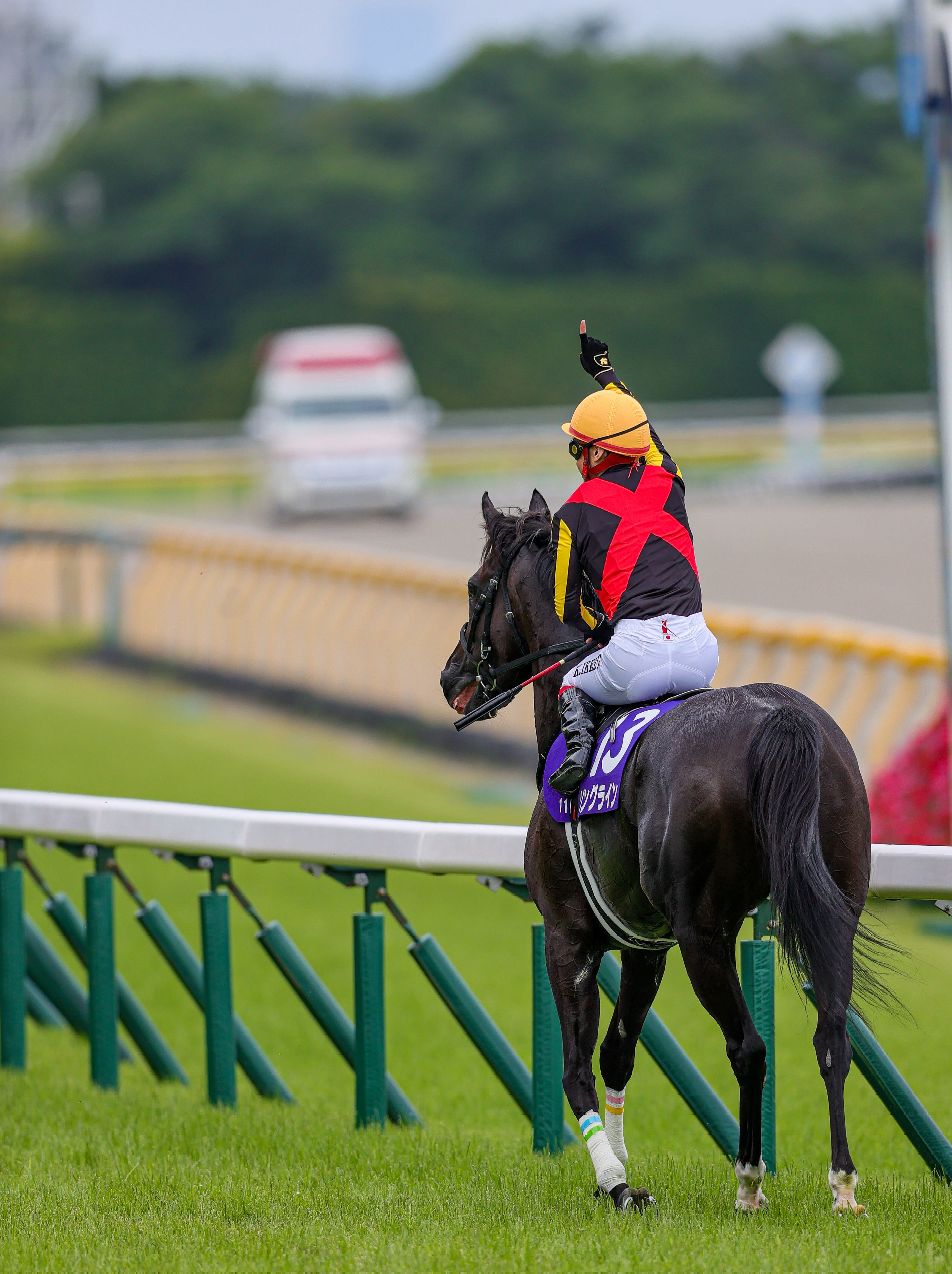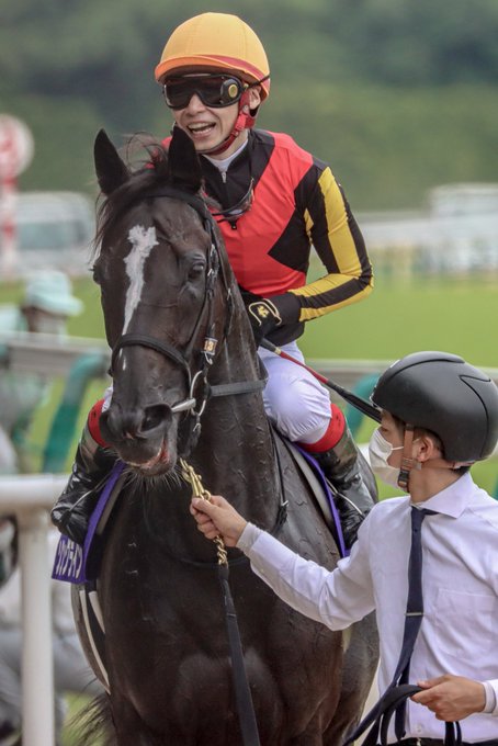 ジョッキー #池添謙一 は大きなガッツポーズ!ウィニングランの後には、ファンにゴーグルを投げるパフォーマンスもありました😊🎉 pic.twitter.com/r5FOFF4tBy