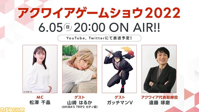 このあと20:00より「アクワイアゲームショウ」がYouTubeにて配信
