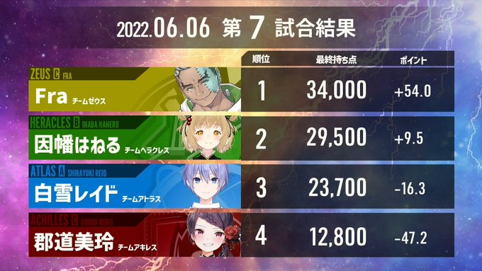 【6/6 #神域リーグ 第3節 結果】