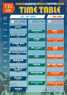7月24日(日)に出演する『OSAKA GIGANTIC MUSIC FESTIVAL 2022』のタイムテーブルが発表されました!
