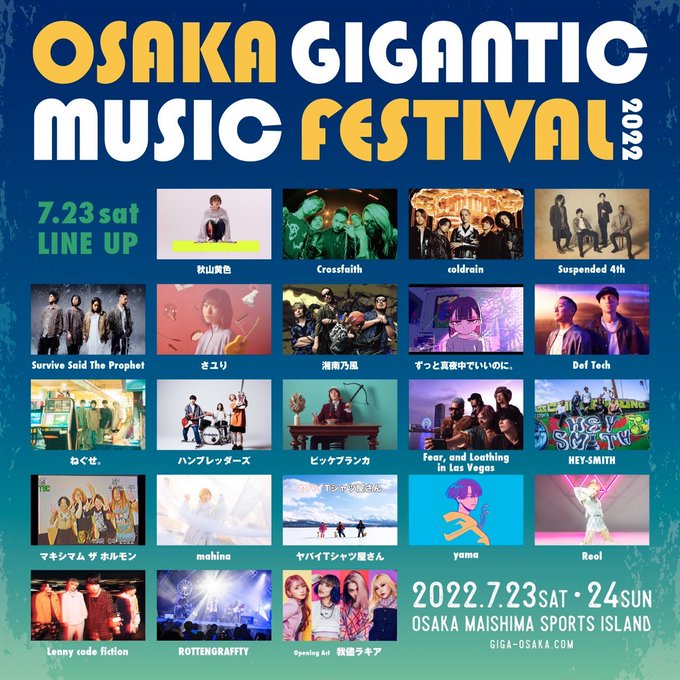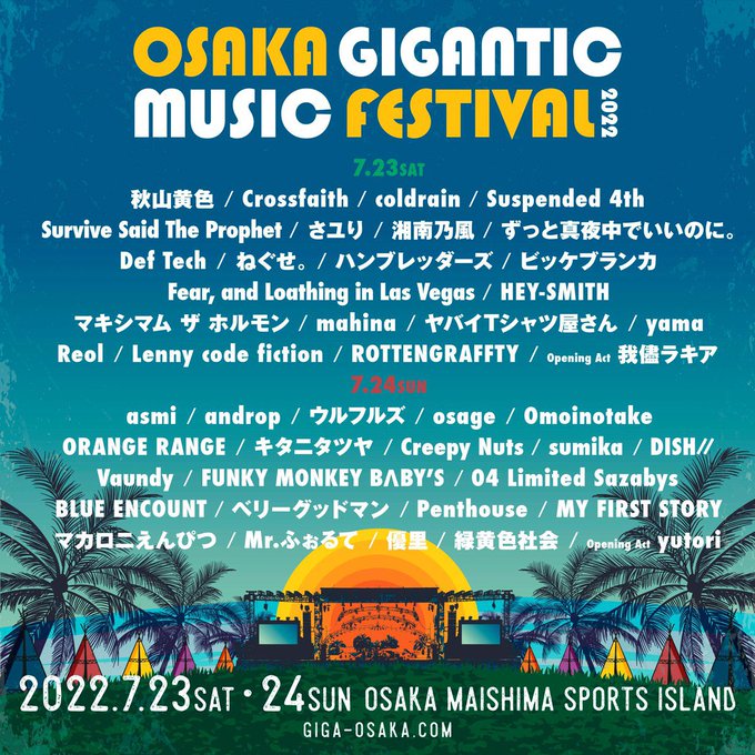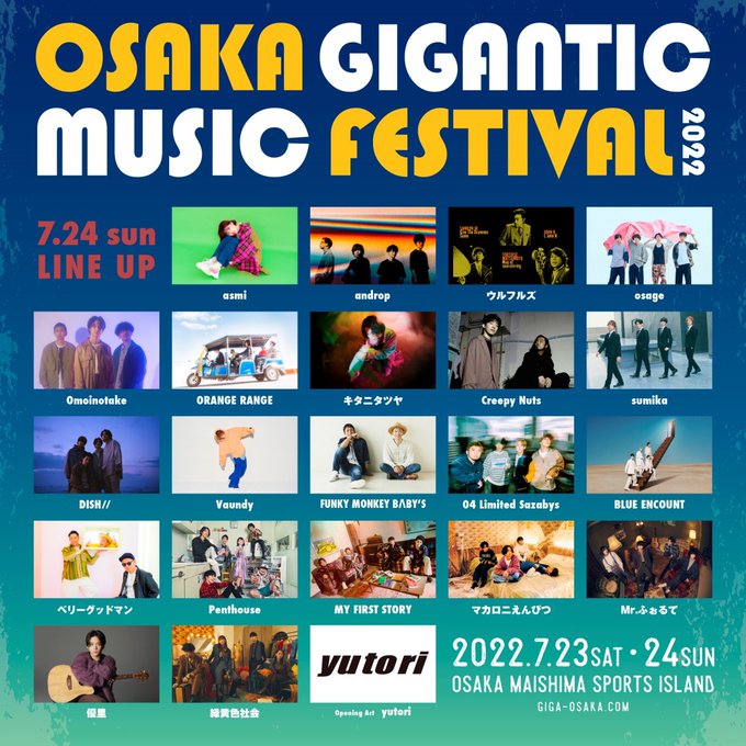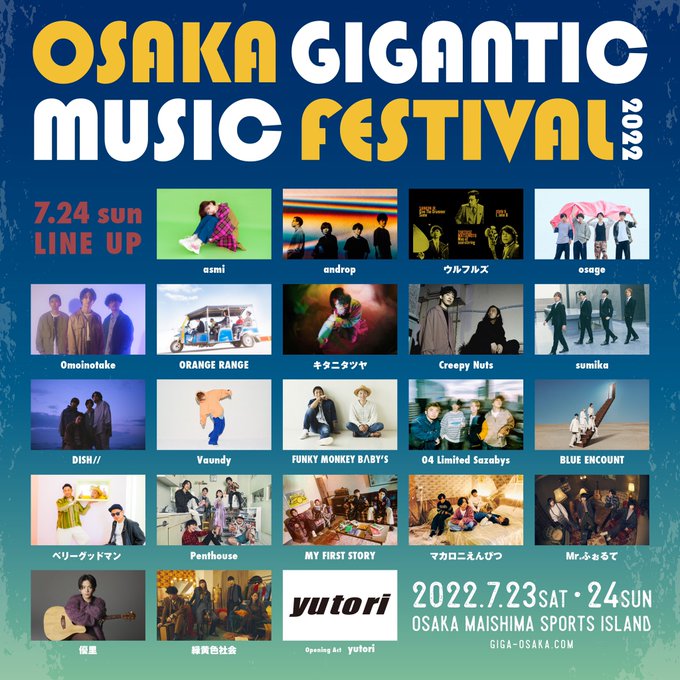 7月24日 (日)大阪・舞洲スポーツアイランドで開催される「OSAKA GIGANTIC MUSIC FESTIVAL2022」