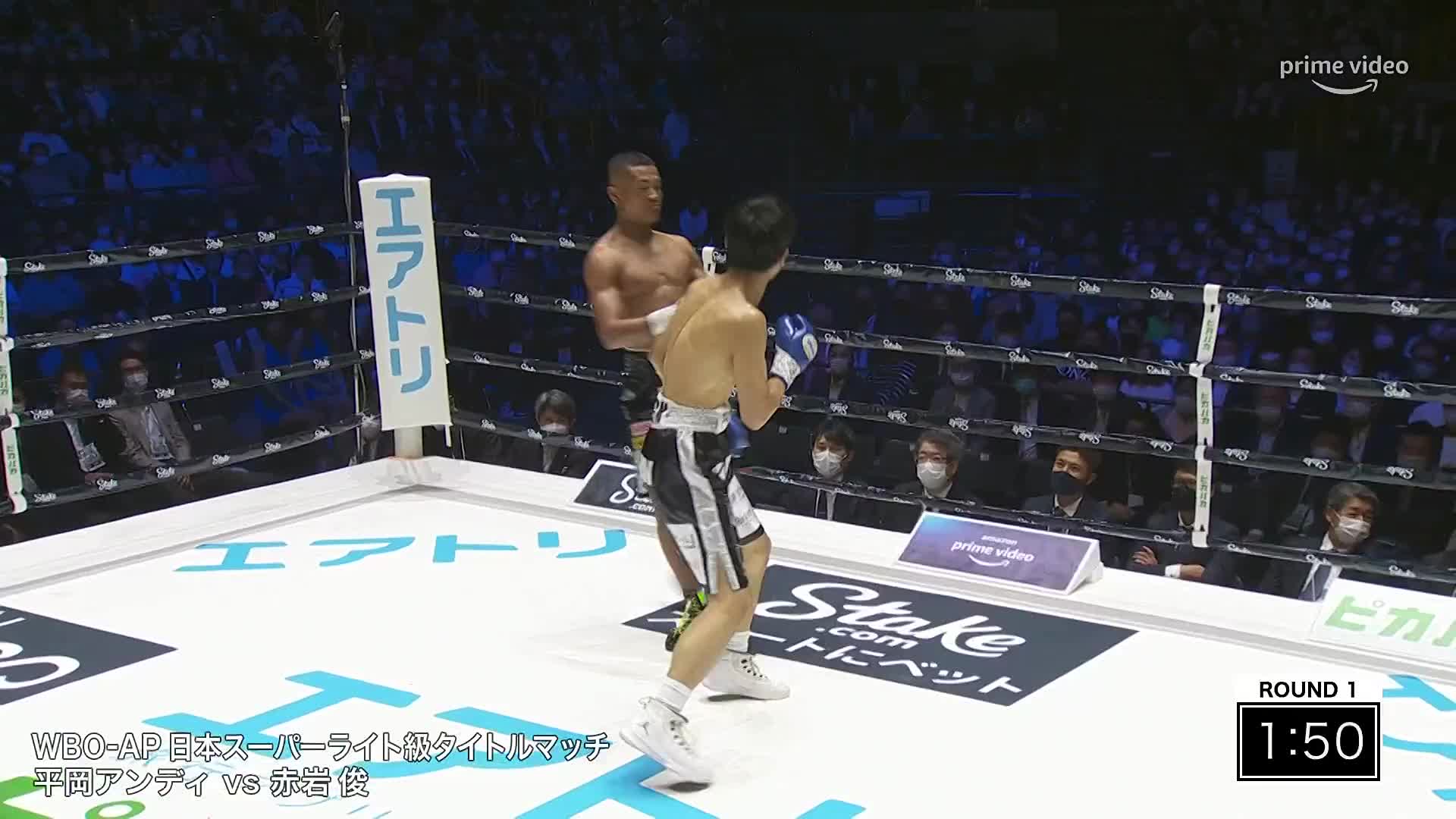 平岡が赤岩に6回TKO勝ち!