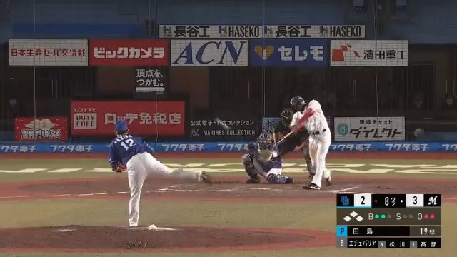 千葉ロッテ #エチェバリア 選手が走者一掃のタイムリー2ベースを放ち、点差を広げた!💪