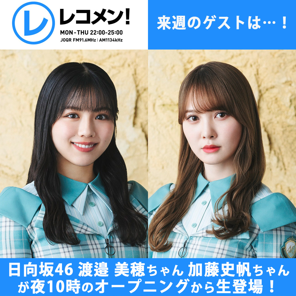 来週、6/14(火)のゲストは、22時のオープニングから #日向坂46 の #渡邉美穂 ちゃんと #加藤史帆 ちゃんが3時間の生出演💓