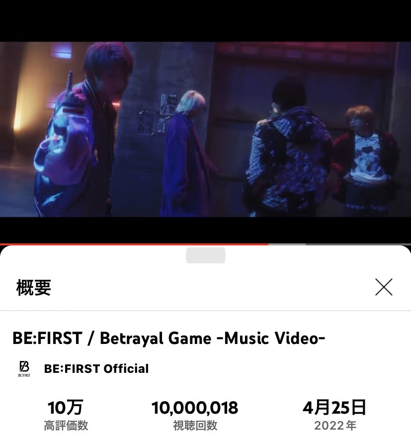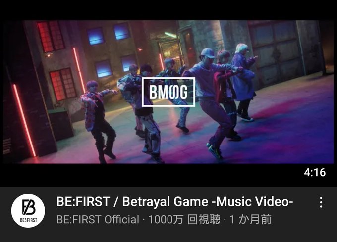 BE:FIRST「Betrayal Game」MVが1000万再生突破🎉