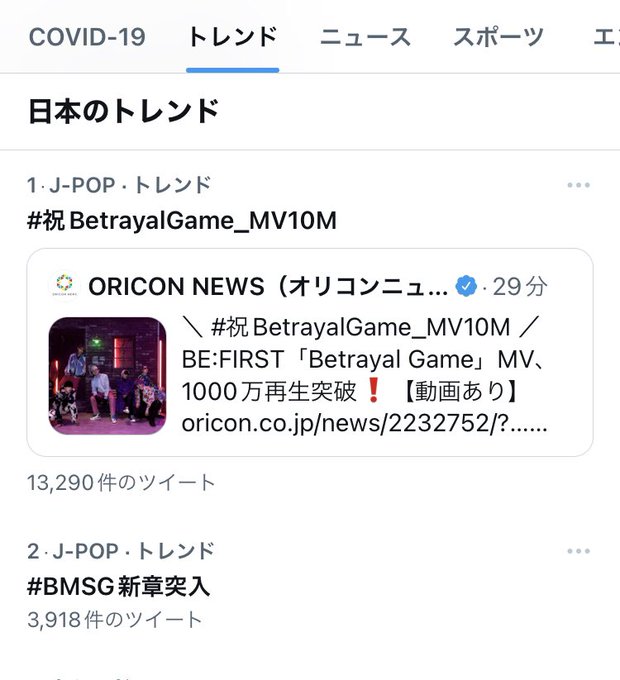 BE:FIRST「Betrayal Game」MV1000万回再生突破でトレンド1位に