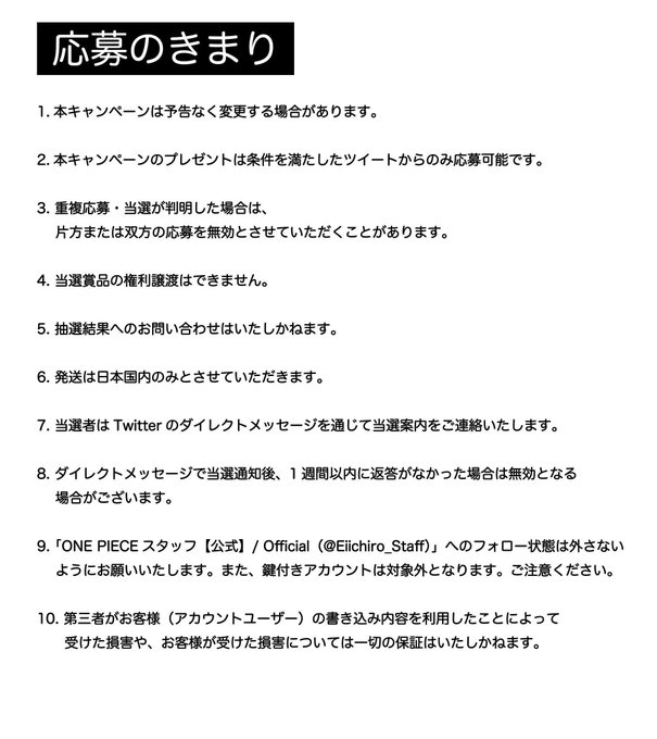 当選者には本アカウントより