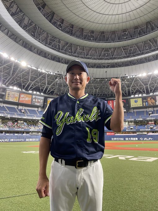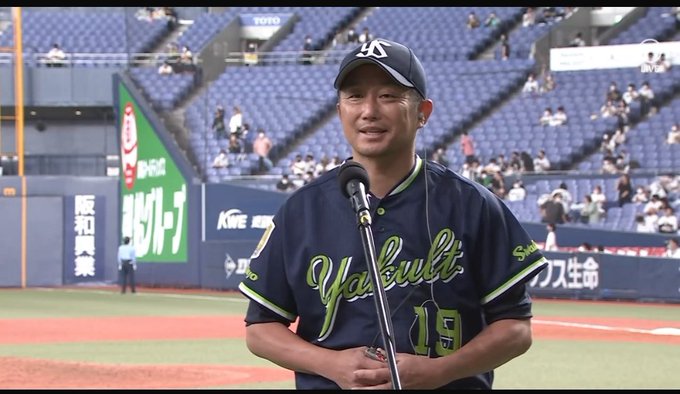 ちなみにカツオさん。通算180勝179敗。貯金も灯りました! #swallows
