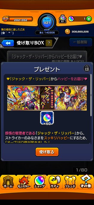 皆さんおはようございます😃今日はモン日ですね🕊ジャックちゃんから粋なプレゼントくれました😊引けたらいいなー。帰蝶と恵比寿も持ってないからチャンスだw #モンスト pic.twitter.com/9sanyuraWk