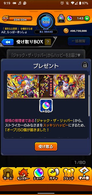 プレゼントでオーブ50個ありがたい☺️
