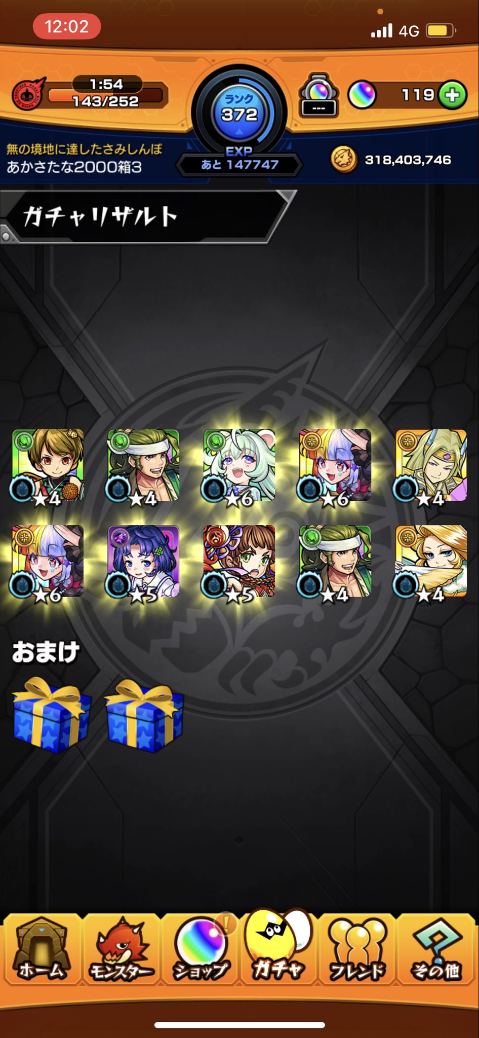 今日はモンストの日なので、デイリーつみたてガチャが10連分貯まります。
