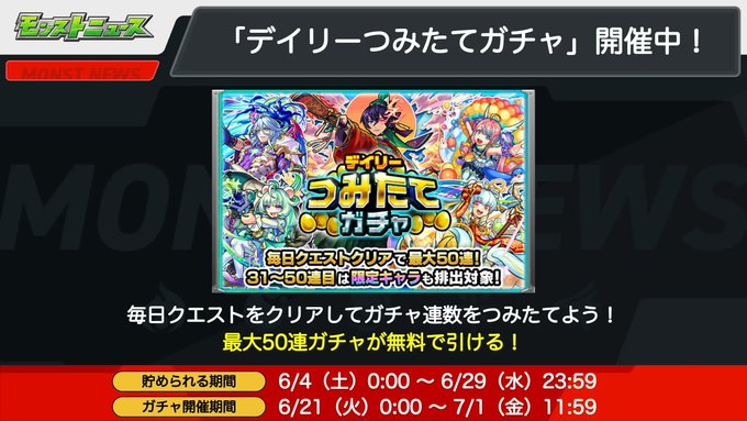毎日 #モンスト を遊んでガチャ連数をつみたてよう💪