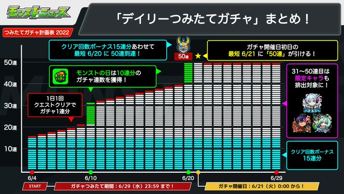 50連を目指す場合は、モンストの日も忘れずにクリアしよう🔥