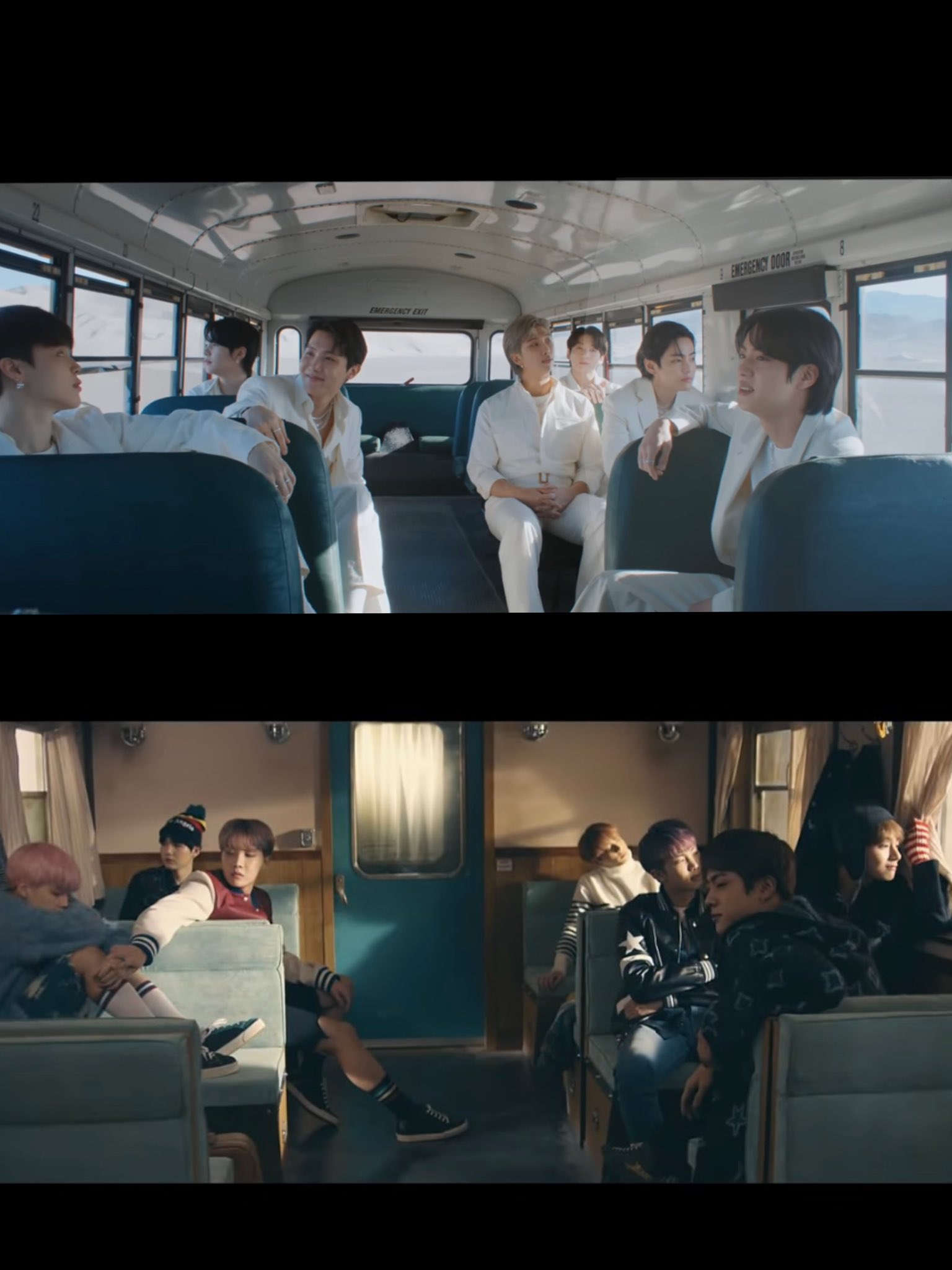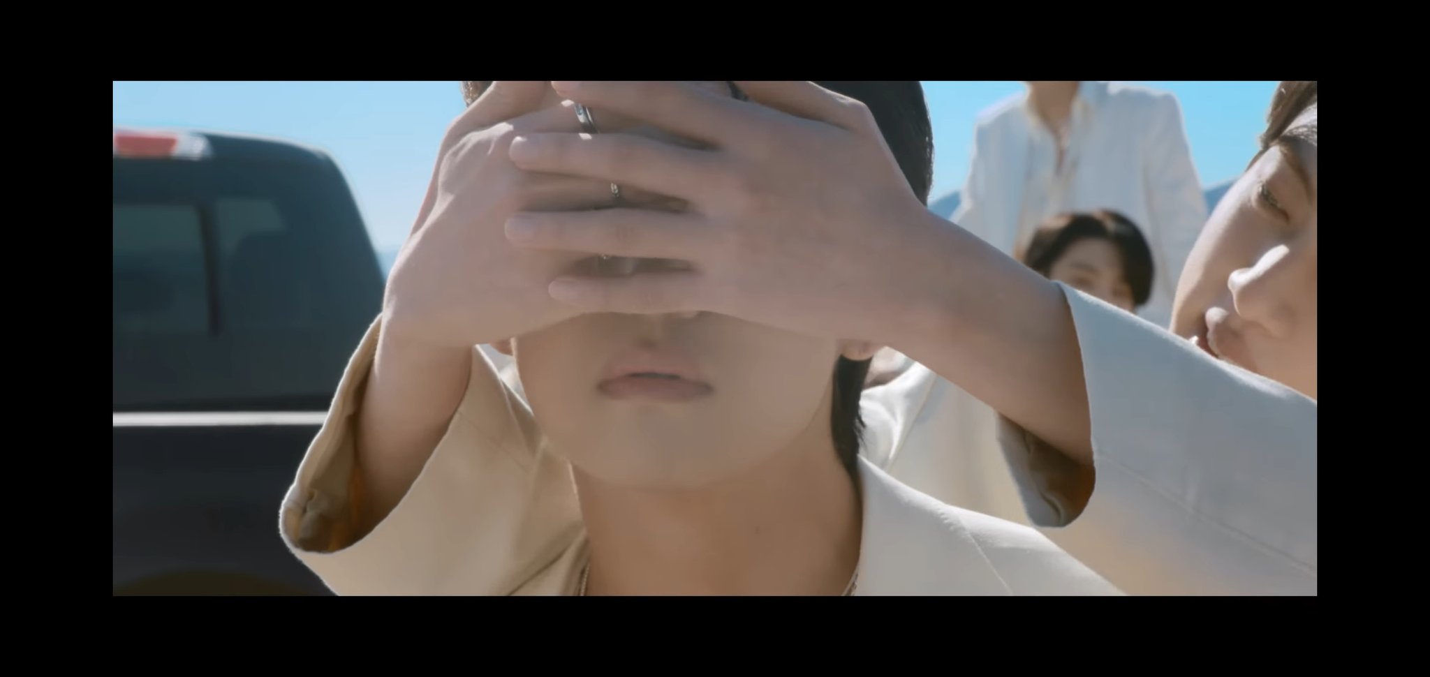 目隠しを外すテテ、spring dayの電車の表情、グクのONのラスト、今回はグクがヒョンに追いつくのではなく、手招きしてる。