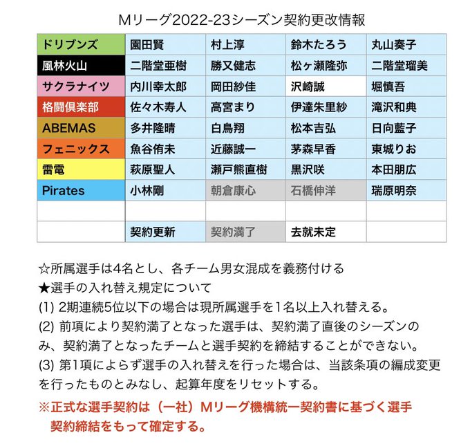 #Mリーグ 2022-23 契約更改について