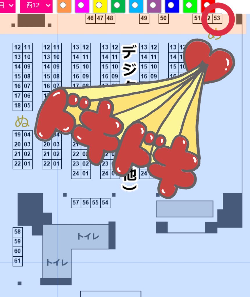◎あなたのサークル「ひやしあんず」は、土曜日 西地区“け”ブロック-06b に配置されました。