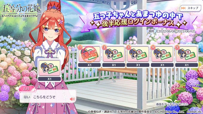 イベント「五等分の想い」合計応援回数報酬ダイヤ配布開始📢
