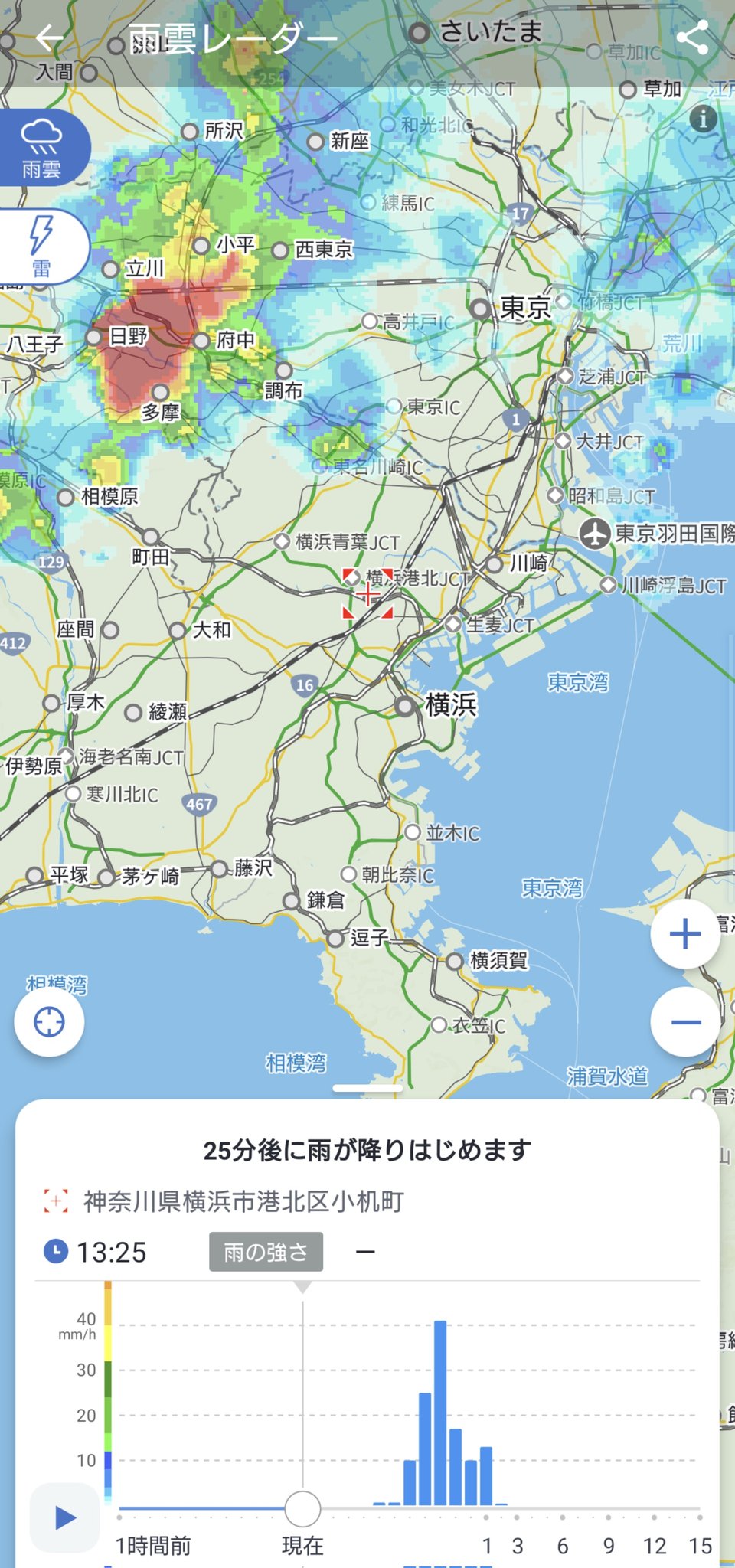 強い雨雲が日産スタジアムに向かっています。屋根の下に退避する等くれぐれもお気をつけください☔