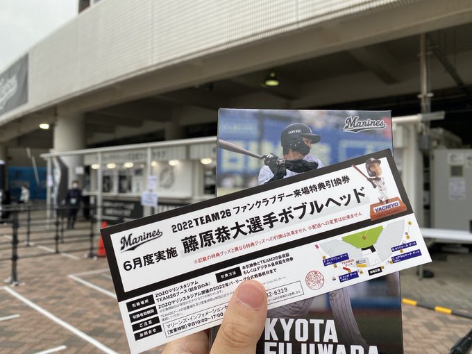 大変お待たせいたしました。#藤原恭大 選手ボブルヘッドの引き換えを昨日より開始いたしました。球場受取の方は「来場特典引換券」をご用意の上TEAM26ブースにお越しください。